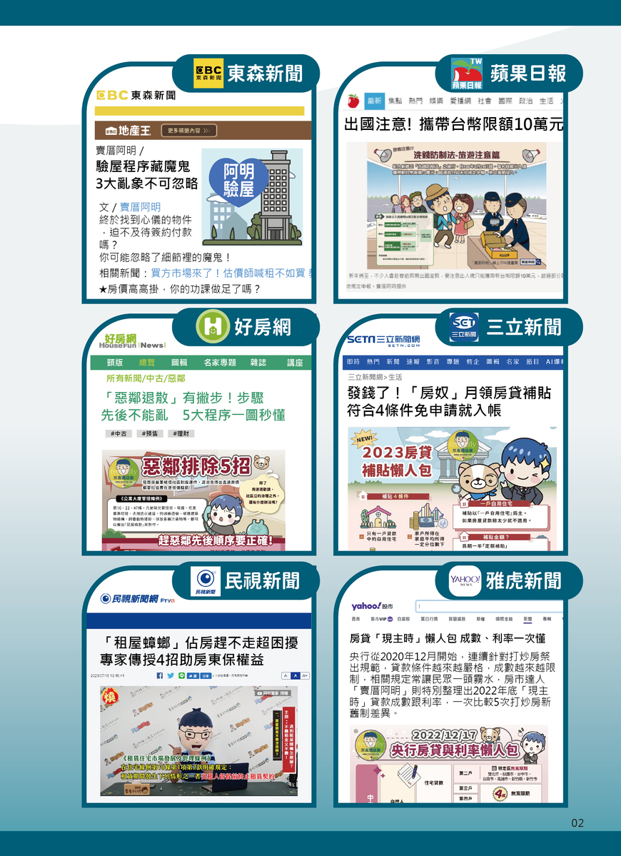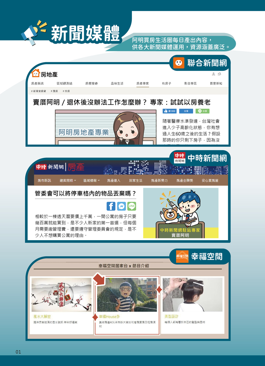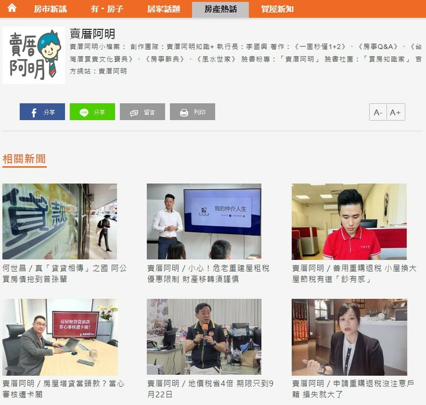 聯合報,中時新聞網,幸福空間,東森新聞,蘋果日報,好房網,三立新聞,民視新聞,雅虎新聞…都可以搜尋的到阿明喔!
