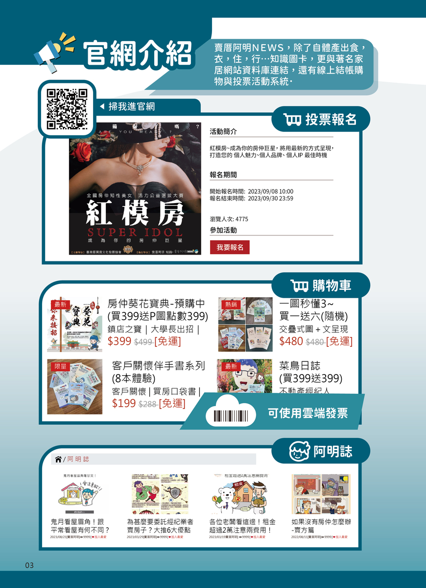 賣厝阿眀NEWS官方網站有著:購物車,阿明誌,一圖秒懂,房市辭典,風水世家,房產即時通,生活圖解,幸福空間頻道
