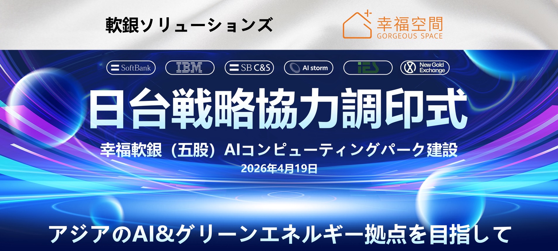 幸福空間將於4月19日於東京軟銀總部舉行隆重的簽約儀式,與日本軟銀ソリューションズ株式会社共同啟動「幸福軟銀(五股)AI算力園區」建設計畫。)