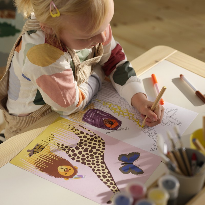 繪畫是許多家庭最愛的遊戲時光,IKEA 與瑞典插畫師Anna Lagerström設計出不同年齡層兒童都能理解的SANDLÖPARE 兒童益智繪本,無須透過任何文字,兒童就能在塗畫過程中自然認識各種草原動物。