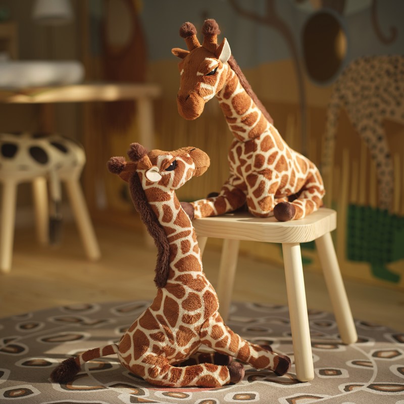 SANDLÖPARE 長頸鹿玩偶也有 70 公分和 43公分親子版本,不論是大人或小朋友,都能找到最適合擁抱的大小。