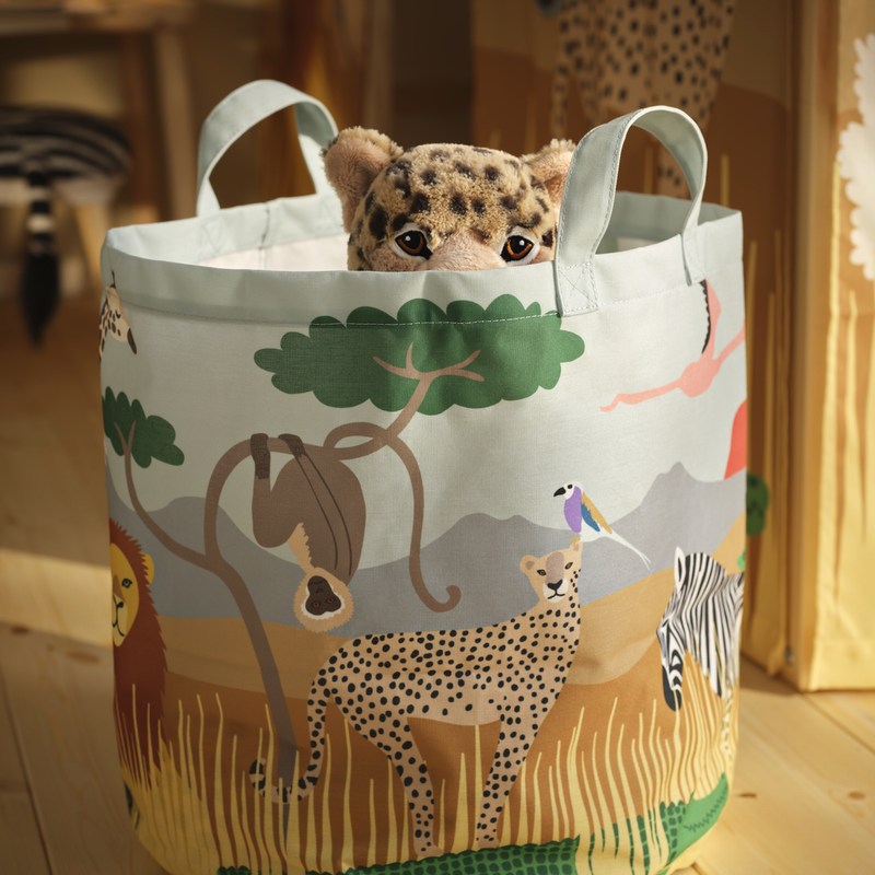 SANDLÖPARE 收納袋用彩色插畫把草原搬進家裡,耐用材質搭配提把設計,實用又方便。