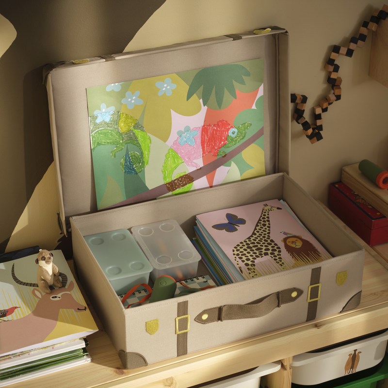 像是探險家小行李的SANDLÖPARE 收納箱,外盒有小標籤可寫上姓名,無論裝什麼都充滿故事感!