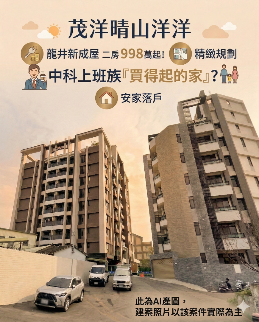 茂洋晴山洋洋|龍井新成屋二房998萬起!中科上班族「買得起的家」?