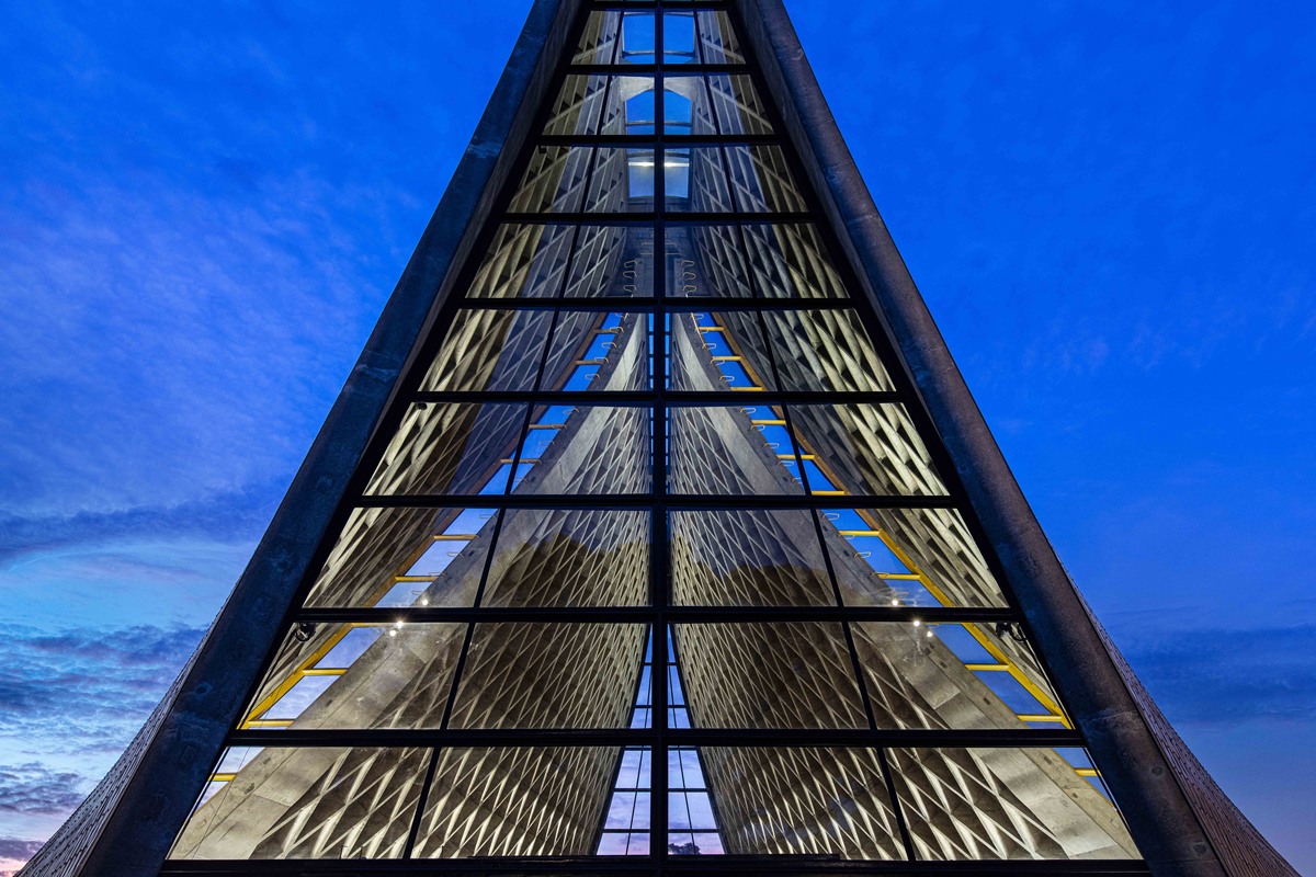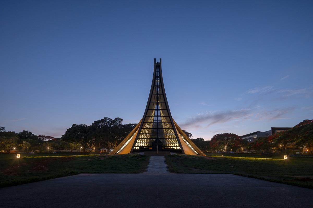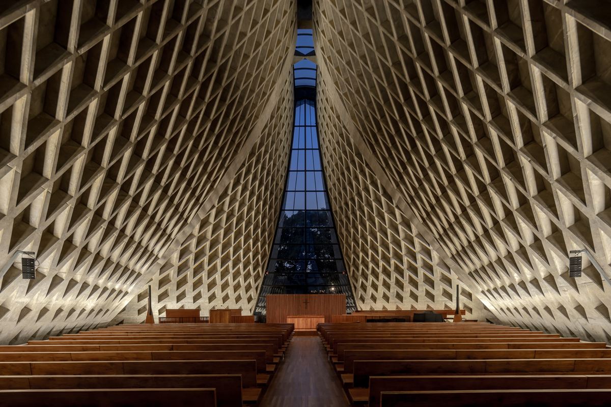以精準、穩定的照明,烘托經典的現代建築,暖調微光勾勒四片曲面結構、以間接照明重新點亮教堂的十字架,細膩地襯托建築的深邃靈性,使教堂在夜色中重現神聖與詩意。透過光與信仰對話,營造出既尊重原作風格,亦兼具現代光環境美學的典範。
