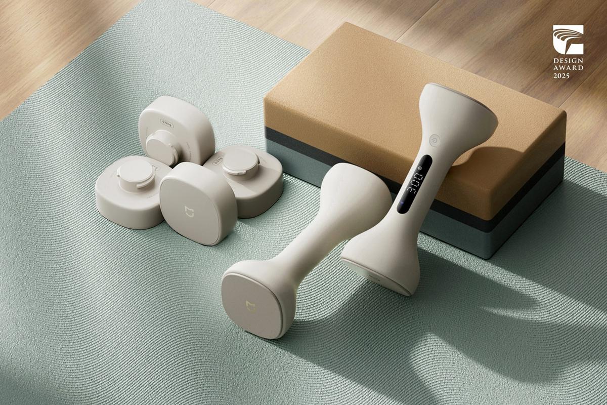 珠海雲麥科技有限公司的「米家智能啞鈴」,其專利旋轉機構可單手切換 1 至 2 公斤重量,並搭載六軸感測器與 App 連動,能即時記錄運動表現並提供指引,為時下越來越流行的居家健身,提升訓練安全性與個人化體驗。