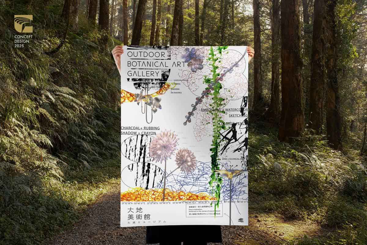 陳姸伶、柯欣儒、韓沐晨、陳家葳、吳芳萱的「大地美術館」,從無邊界的美術館概念出發,邀請大家以不破壞環境的方式紀錄自然植物,讓創作成為旅行的一部分,享受自然、藝術與設計之間的連結,也為深度旅遊提供別樣參與方式與想像。
