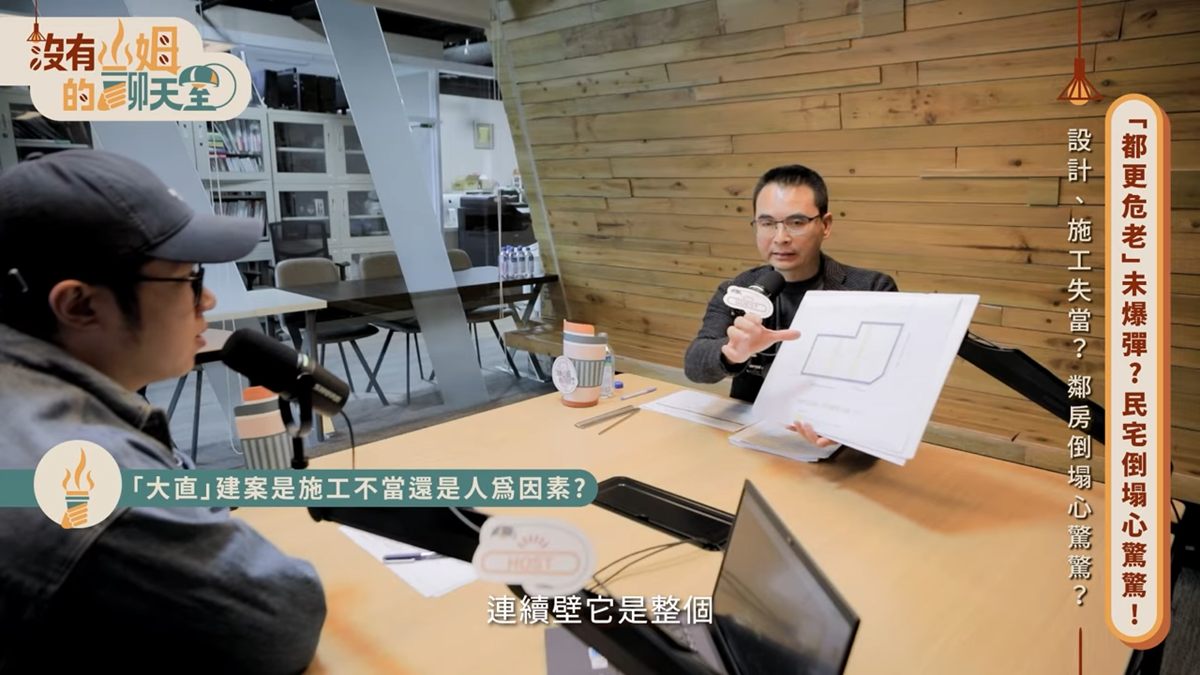 內湖大直與三重接連發生因建案施工,導致鄰房倒塌的嚴重事故,引起社會譁然,深怕類似情形發生在自家。為了解建案倒塌原因與相關問題,「沒有山姆的聊天室」特別邀請建築安全履歷協會的創會理事長戴雲發先生,深度剖析建案倒塌原因,以及制度層面問題。