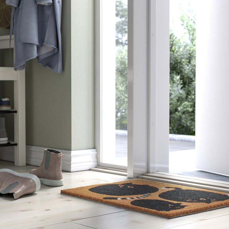 打開家門,就有貓咪在門口等你!VÄGTYP門墊以可愛黑貓圖案設計,讓每天回家都像被小貓迎接。耐用材質好清理,底部採防滑設計不易移位,讓可愛與實用一次到位。
