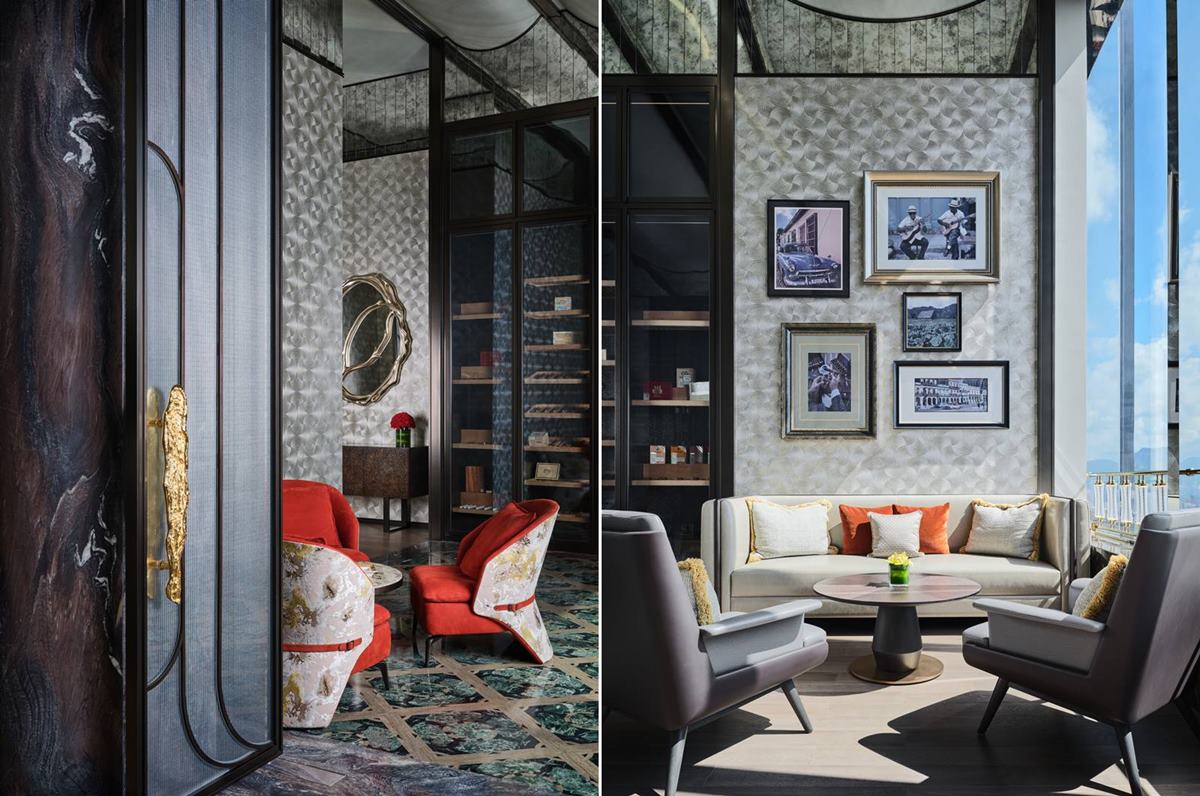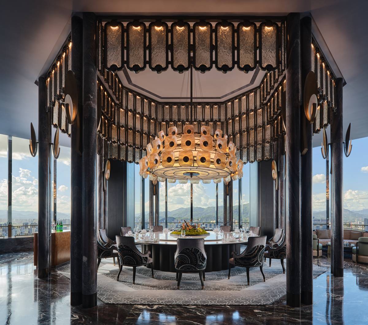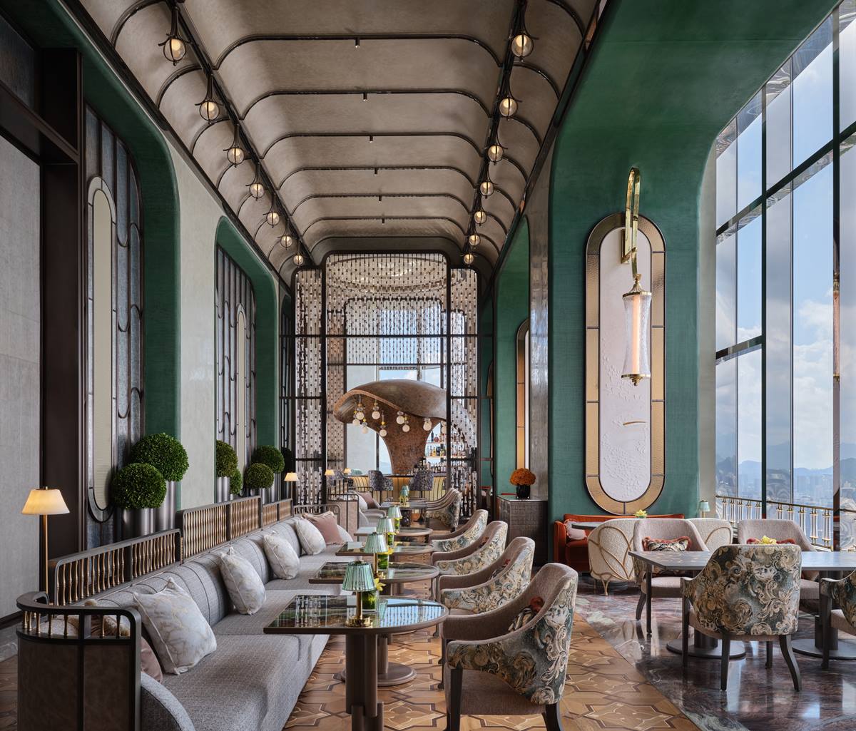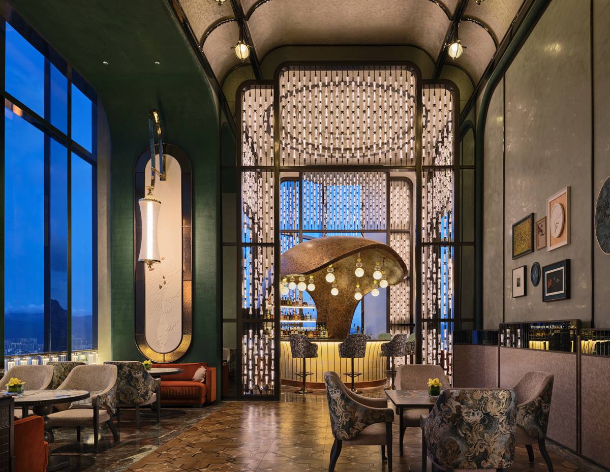 AB Concept設計總監鍾景豐(Kevin Chung)及團隊巧妙將溫州深厚的商港文化融入這片面積達7,000平方米的空中社交空間,將千年商業文明與藝術精髓凝聚其中,交織歷史與現代的和諧美感。整體設計承襲中式建築的典雅沉穩,融入西方現代美學,表達華洋薈萃的藝術。