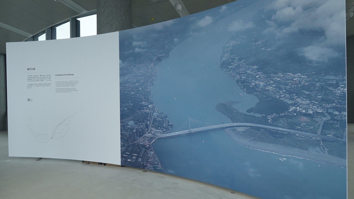淡江大橋的設計形態語言,源自舞者之美、夕陽之美以及雙手合十的祈福之美。本展以一樓至三樓的垂直敘事架構,帶領觀者從宏觀環境到微觀細節,透過數位動態圖,讓民眾體驗橋面的景觀燈桿的光影姿態、動態韻律,既是結構力學的最適解,也構成了一幅在淡水河口每日上演的動態畫面,循序進入設計思維及工程實踐的核心。