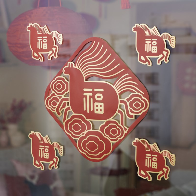 居家點綴紅色能為空間帶來活力感,加上連結春節以奔跑的馬匹搭配「福」字設計,象徵馬到成功、福氣上門。不到百元就能一次擁有 6 張裝飾,新的一年無論是貼在窗邊或門口,都為家裡立下好兆頭,迎接滿滿好運。