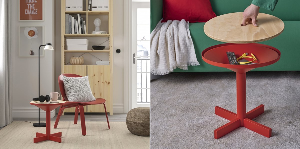 活潑的亮紅色外觀除了成為客廳最吸睛的焦點外,圓潤的線條減少了視覺上的生硬感,圓形漏斗狀也象徵財氣自然在家中聚集。桌面中央的圓孔設計讓托盤可整個提起,下方還有隱藏收納空間,把常用小物隨手收乾淨,讓好福氣一起留在生活裡!