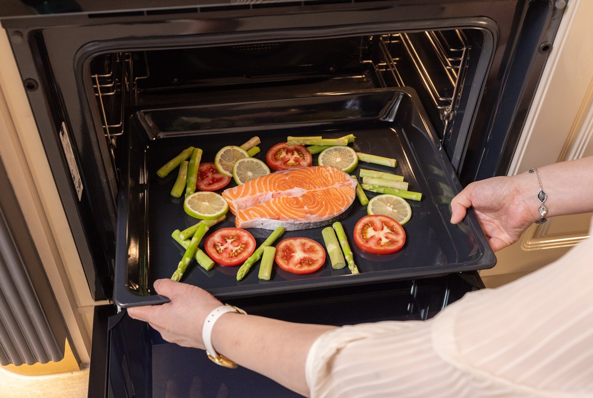 無論是在家或在辦公室,一份精緻小巧的蛋糕、鹹派等下午茶點,都能為人們補充能量,提振精神。郁琇琇設計總監選用的HLB 8550 SC-60cm舒肥蒸烤箱能烘焙出香氣四溢的麵包、口感蓬鬆柔軟的蛋糕,撫慰辦公室同仁的心。此外,也可切換為純烤、純蒸、蒸烤雙重等12種烘烤行程與4種蒸汽模式,更有低溫舒肥功能,完美鎖住食材水分與營養,創造多汁不乾柴的頂級肉類料理,滿足多元烹調需求。
