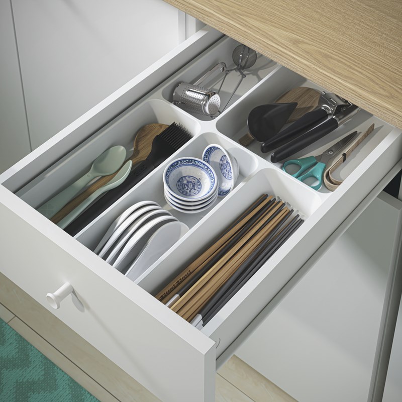 連抽屜內部也要井然有序!STÖDJA 刀叉收納盤透過分格設計,讓抽屜一打開就清楚分明,讓餐具依序擺放,拿取更方便,連細節都能整理到位,是實用派女神維持秩序感的關鍵。