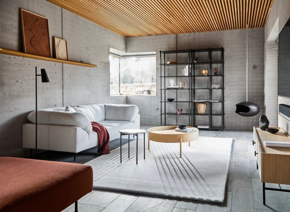 ▲茶几的挑選我很鼓勵讀者嘗試圓形。因為空間裡多半家具都是方形,包含房子本身就是四方的,所以運用一些圓形的意象可以讓視覺更有流動感。WOUD Collar 沙發系列、Arc 圓形咖啡桌(圖片提供/一品文化、WOW Furniture)