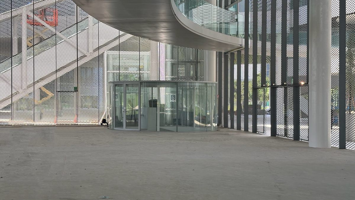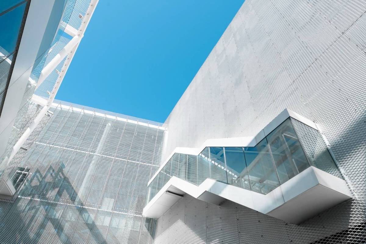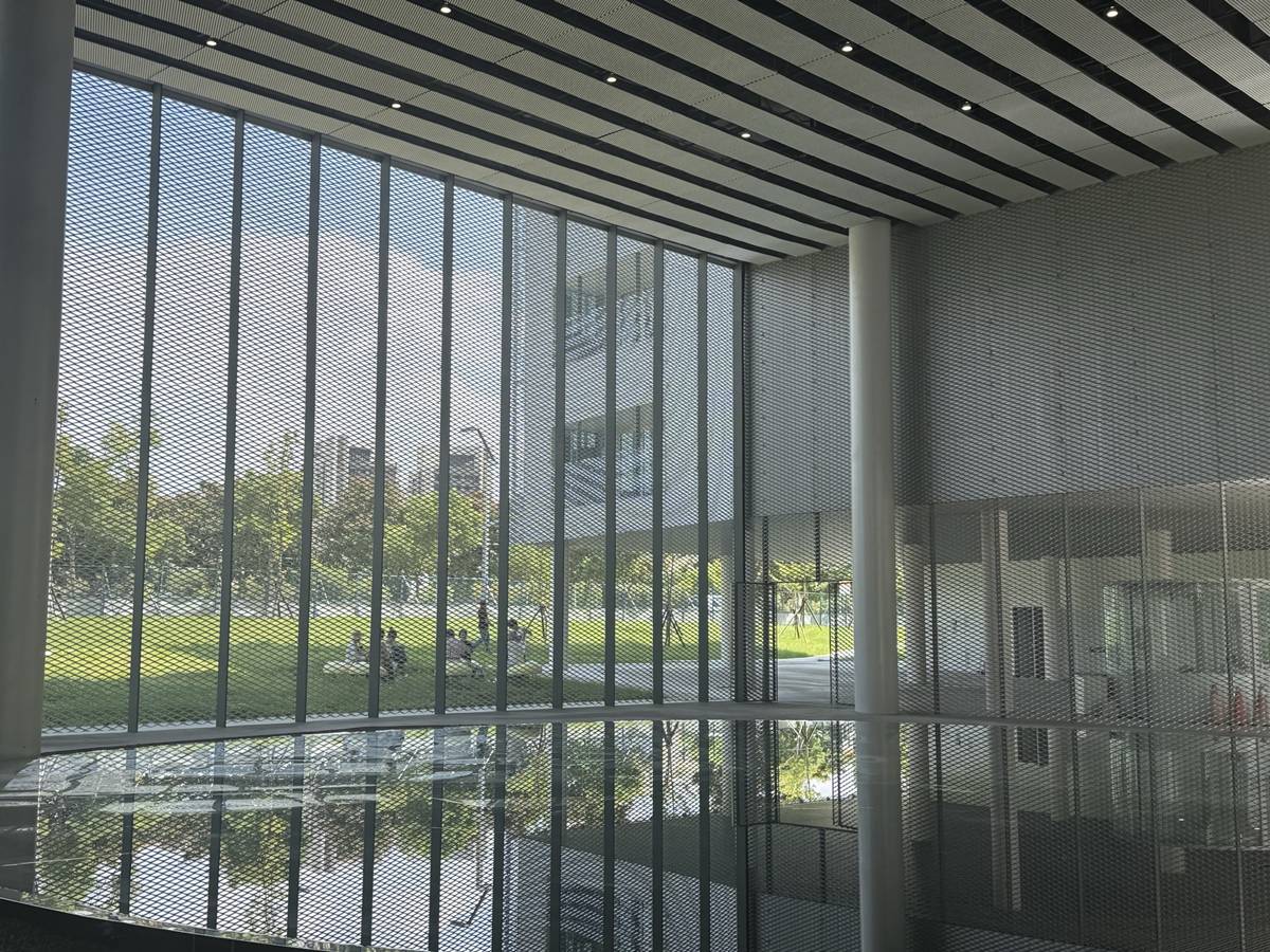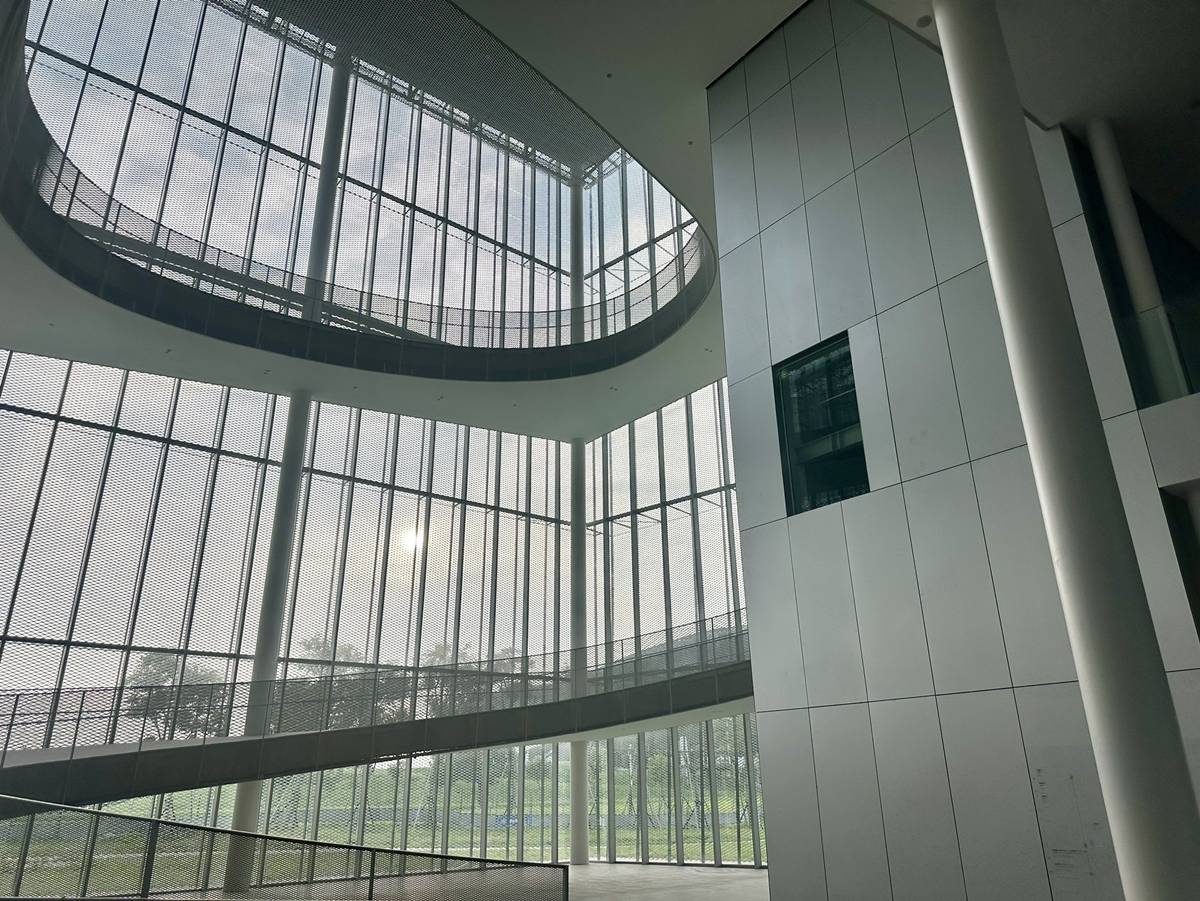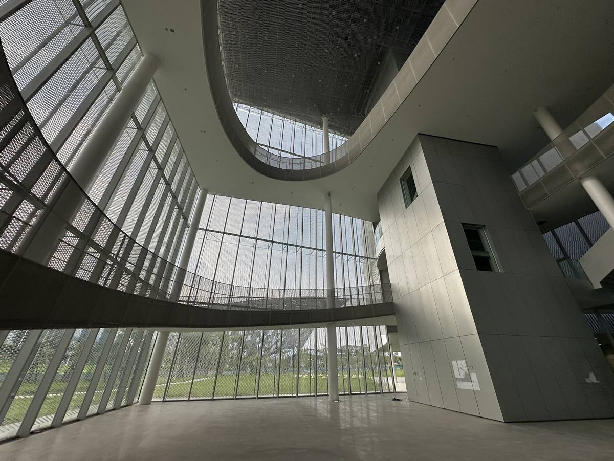▲外牆採金屬擴張網帷幕設計營造出輕盈且通透的視覺效果。(圖片來源/台中市政府)