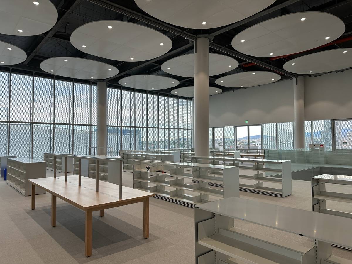 ▲圖書館內天花板採用圓形造型設計呈現圓融的美感。(圖片來源/台中市政府)