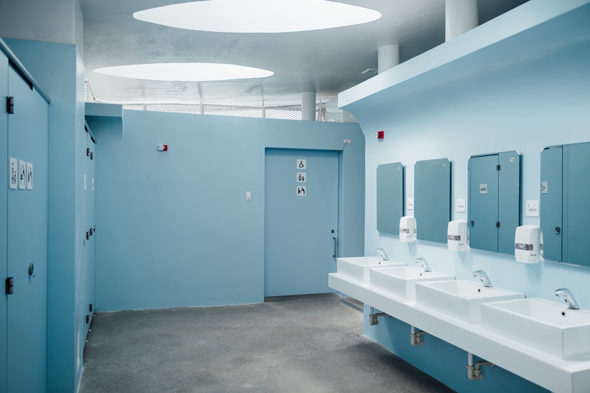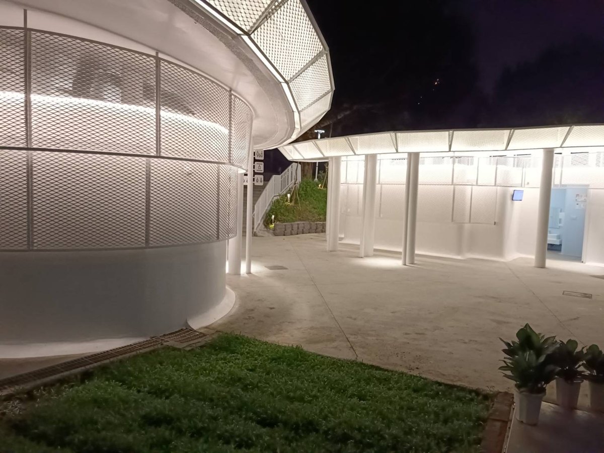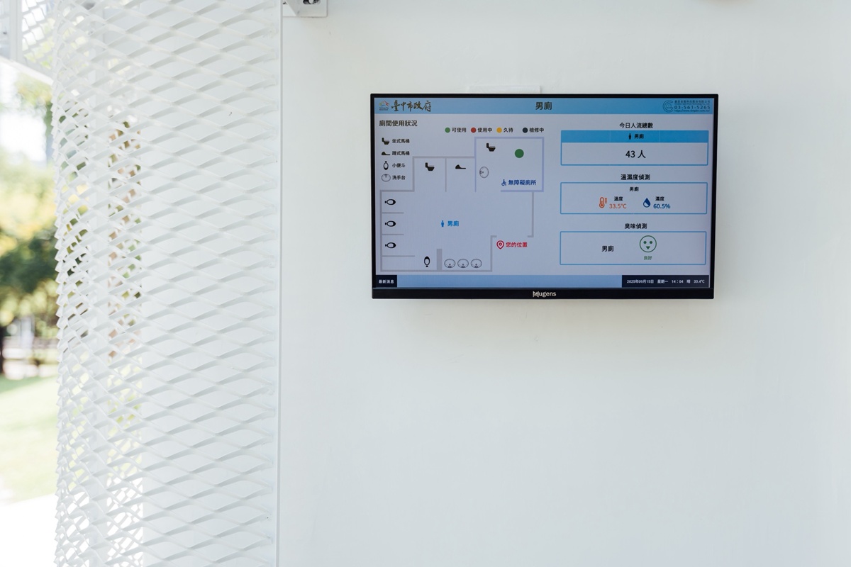 「親子小白宮」兼具美感與實用。內部規劃親子廁所、哺乳室及性別友善廁所,並設有兒童專用馬桶與洗手台,滿足不同族群需求。男女廁比例達1比6、坐蹲間比例13比8,優於一般公廁標準,有效紓解公園人潮高峰的等候問題。另結合智慧管理系統,提供 QR Code 即時通報、耗材監控與久待示警功能,提升使用者體驗,也大幅增加維護效率。
