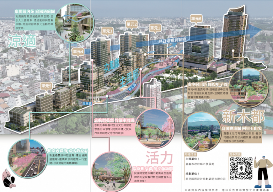 嘉市府都市發展處長許懷群表示,該區基地面積約9.3公頃,鄰近KANO園區與嘉義公園,兼具綠意景觀與文化底蘊。目前市地重劃工程已完成,並持續推動眷村生活文化館建置。此次透過大街廓整體規劃,導入具規模性的整合開發模式,目標是形塑「可預期、可操作、具競爭力」的投資環境,提升整體城市價值。
