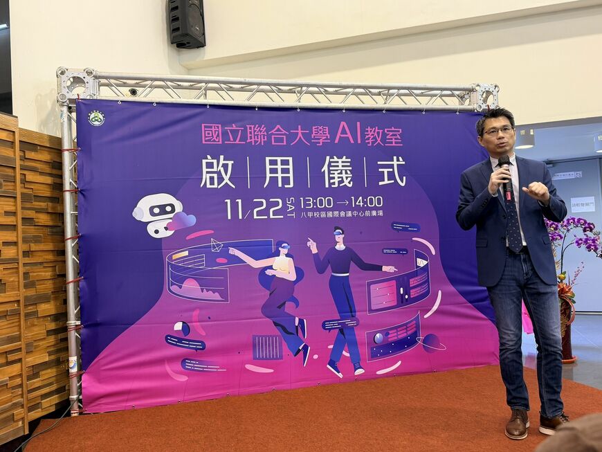 在啟用儀式上,擁有AI專長研究領域的聯大副校長丁川康,向與會者介紹AI教室的建置理念與未來應用方向,同時期盼AI教室能為聯大在人工智慧領域的課程精進、人才培育與跨領域學習推動上發揮實作能量上,帶來重大助益。