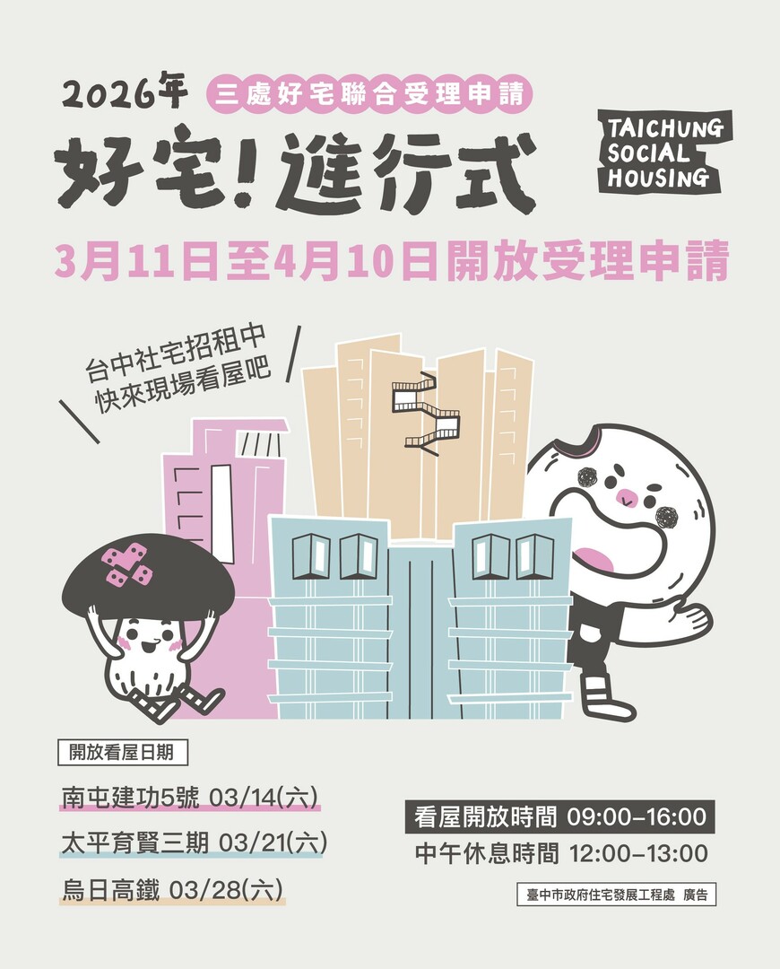 「好宅」聯合招租!南屯建功5號、太平育賢三期、烏日高鐵好宅 即日起至4/10開放申請