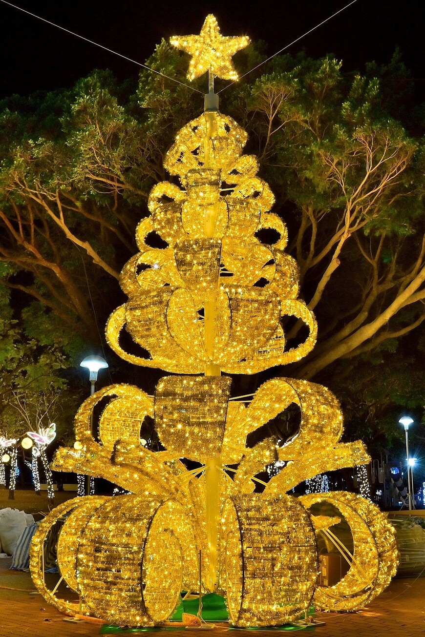 其中主燈「光漾水舞樹」以金黃緞帶與波紋意象打造,成為園區最吸睛的打卡焦點。燈區設計融入聖誕元素,多個步入式光影區打造冬季童話般夢幻場景,讓民眾彷彿置身光影奇境。