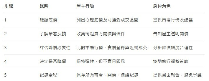 1. 明確溝通底價與談判策略:與房仲再次確認底價、降價幅度及談判原則。