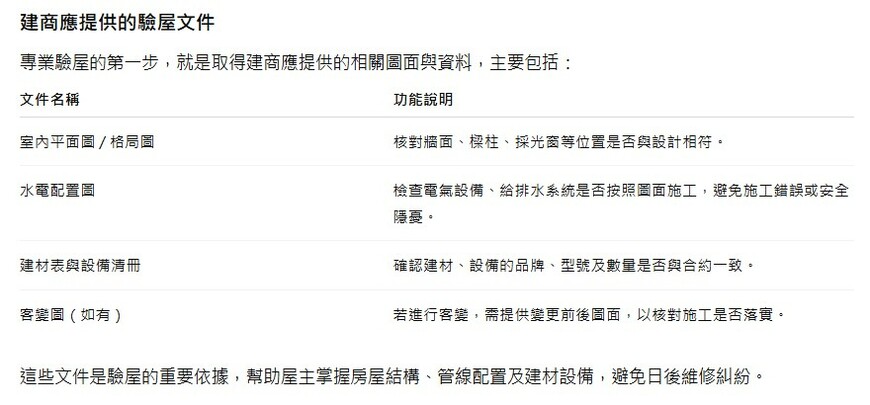 驗屋專家建議,在正式驗收前,消費者應該提前向建商索取這些文件,並預留時間仔細閱讀。