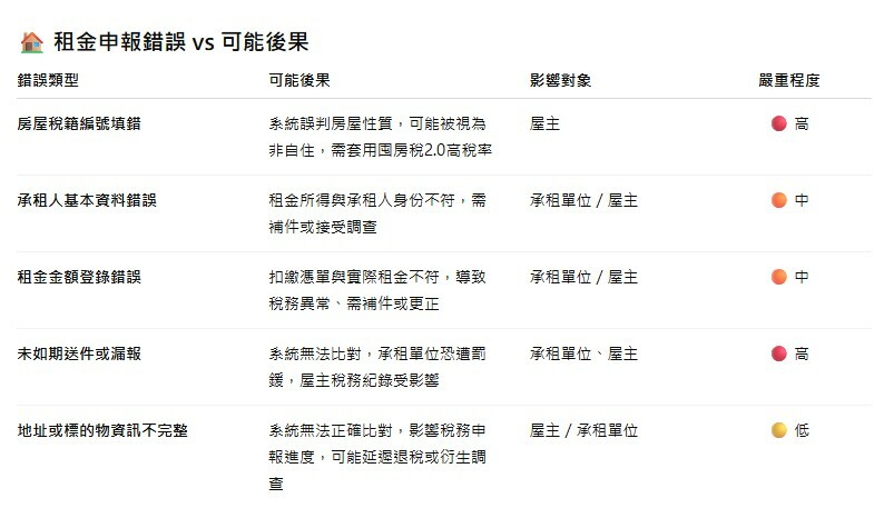 在高壓的房市稅制氛圍下,租金申報早已不只是會計或出納的例行作業,而是涉及屋主權益的關鍵環節。專家提醒,承租單位在送件前應反覆核對稅籍編號,必要時比對租約或地政資料,以避免「小錯誤釀大災」。