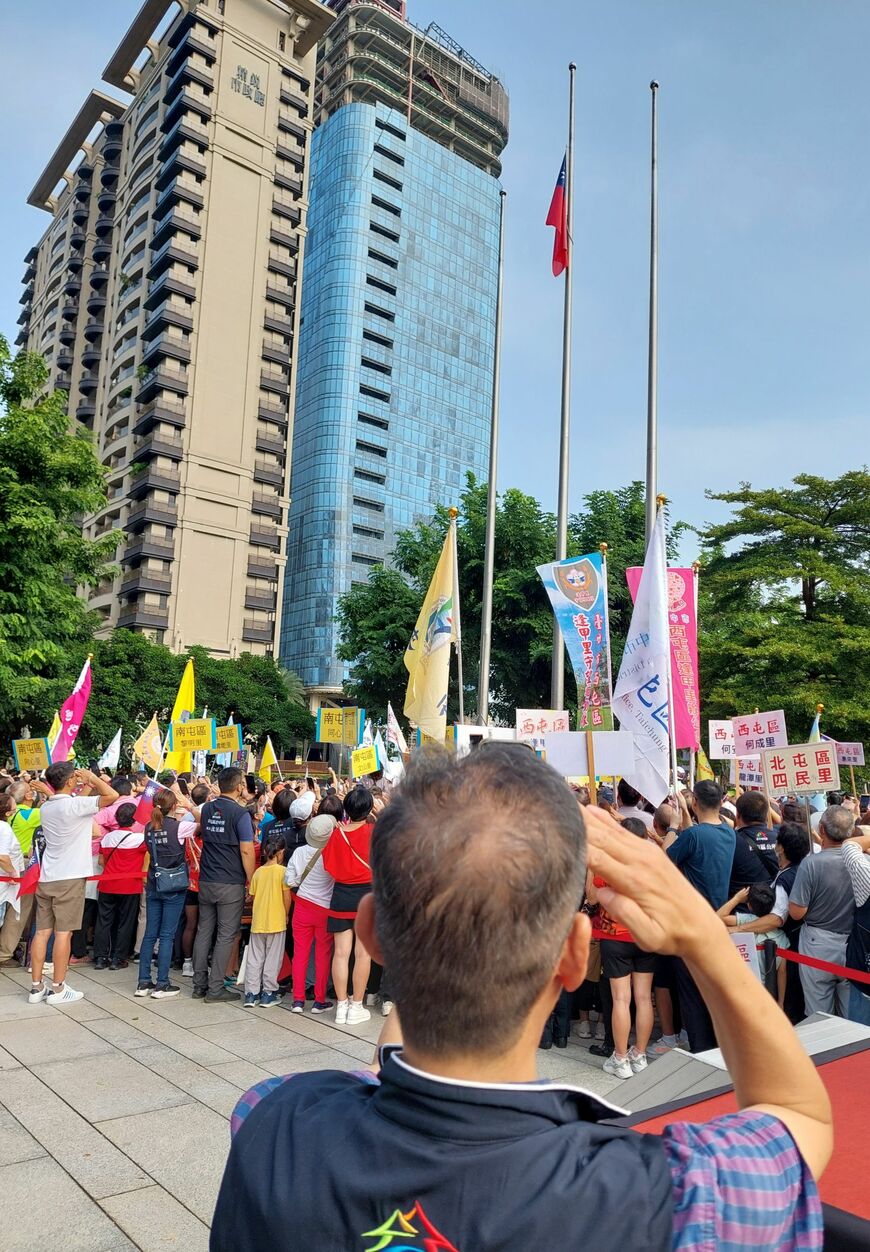 ▲ 升旗典禮開始,一早現場參與民眾向國旗敬禮。圖/記者游穎達攝