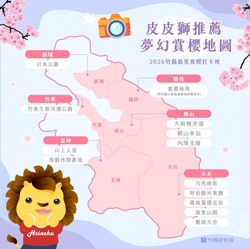 2026竹縣櫻花季即將登場 皮皮獅搶先公開「夢幻賞櫻地圖」